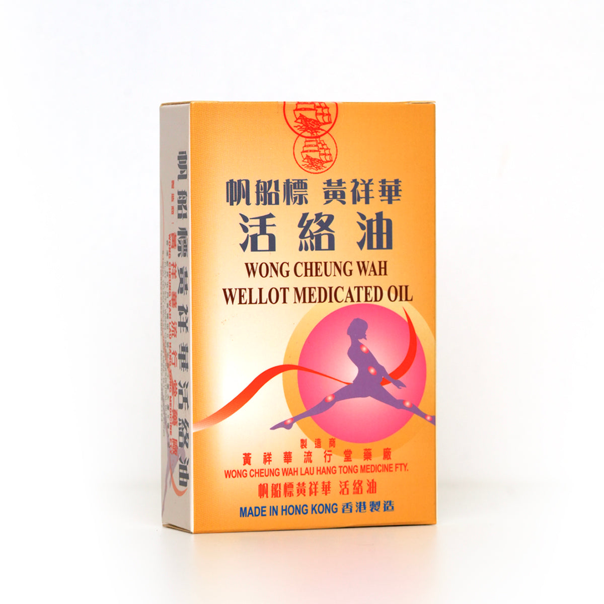 用法用量:外用,將帆船標黃祥華活絡油塗適量於患 處,以拇指用適當力度按壓、推、揉,先輕後漸加重,以患者不感到痛楚為準則,每天按此用法,進行三至五次、當令痛楚舒緩。兒童使用本品前,應諮詢中醫師或醫生意貝,使用時避免觸及眼睛及黏膜。